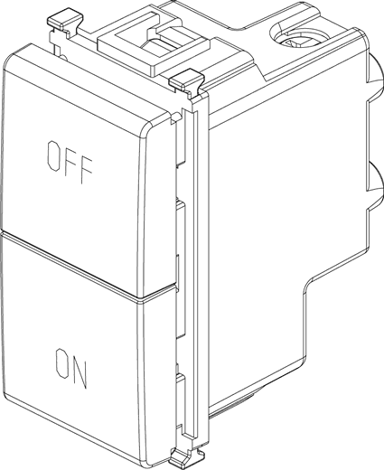 Due pulsanti indipendenti 1P NO + 1P NC 10 A, simboli ON e OFF.