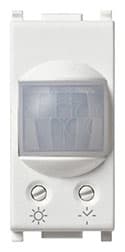 Interruttore con sensore di presenza ad infrarossi per accensione luci, soglia del sensore crepuscolare e ciclo di temporizzazione regolabili, uscita a relè NO 6 A 230 V~, alimentazione 230 V~ 50-60 Hz, bianco