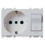 Presa SICURY 2P+T 16 A standard italiano tipo P30 (contatti di terra laterali e centrale), interbloccata con interruttore automatico magnetotermico 1P+N C 16, 230 V~ 50 Hz, p.i. 3000 A, Silver - 3 moduli