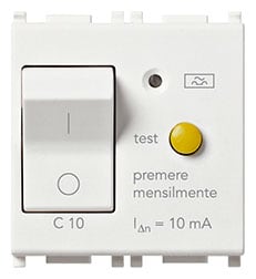 Interruttore automatico magnetotermico differenziale 1P+N C 10, 120-230 V~ 50-60 Hz, IΔn 10 mA, p.i. 3000 A, bianco - 2 moduli
