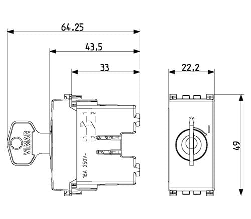 VIMAR S.P.A. - VIW19086 PULSANTE 2P NO 16A +CHIAVE GRIGIO