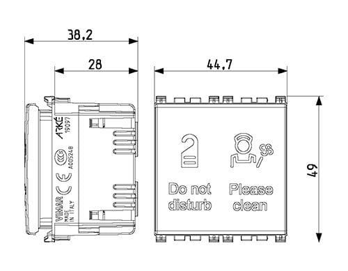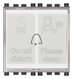 Pulsante 1P NO 10 A 250 V~ con due spie luminose per hotel Do Not Disturb e Please Clean 230V~, grigio - 2 moduli