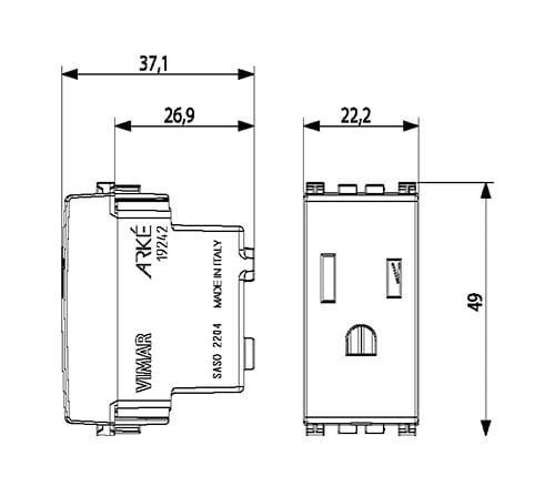 VIMAR S.P.A. - VIW19242.B PRESA SICURY 2P+T 15A USA+SASO BIANCO