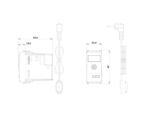 Interfaccia per trasmissione di comandi By-me a ricevitore IR, per domotica By-me, completo di cavetto 3m, bianco