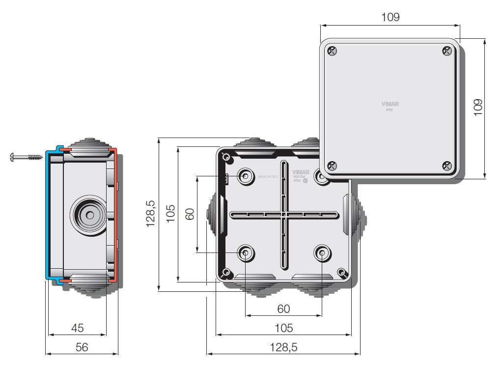 VIMAR S.P.A. - VIWV55204 SCATOLA DERIVAZIONE IP56 100X100X50MM
