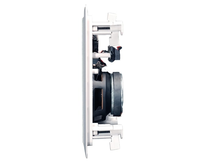 Vivaldi Giove GIADA10, diffusore rettangolare, 2 vie da incasso, HI-FI. Altoparlante: 11 cm woofer. Tweeter 1,3 cm in mylar. Potenza 30W RMS. Potenza musicale 60W. Amplificazione consigliata da 10 a 40 W RMS. Impedenza 8 Ω. Risposta in frequenza 60-20000Hz. Sensibilità 88 dB. Angolo di dispersione 120° (V/O). Dimensioni diffusore (LxHxP) 147x222x60 mm. Foro da incasso (LxH) 120x195 mm. Peso 1,4 Kg. Incasso su cartongesso, pareti di legno e simili: non servono accessori, il diffusore nel retro ha dei ganci per l'ancoraggio stabile. Incasso su muratura: tramite scatola da incasso Vivaldi Ulisse SR10. Colore bianco RAL9003, verniciabile (vedi Vivaldi Giove GIADA10.R). Cabinet: ABS con griglia di protezione in metallo. Temperatura di lavoro da -20° a +65°.
