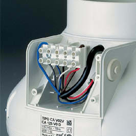 •Struttura in resina termoplastica PP autoestinguente VO. •motore a induzione , di tipo a rotore esterno con protettore termico a ripristino manuale. •bassi livelli di consumo specifico •costruiti a prova di spruzzi d' acqua (adatti per ambienti umidi). •ampio range di temperature di funzionamento continuo compreso tra -25°C e +55°C •grado di protezione: IP44 •classe di isolamento: II.