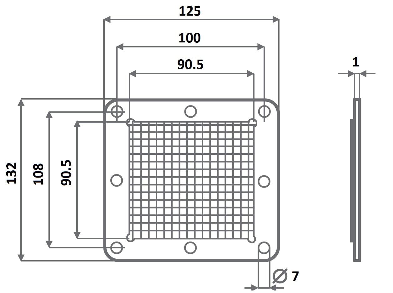 Griglia di protezione lato mandata - Da applicare al prodotto sul lato di mandata per proteggere le parti in movimento nel caso l’apparecchio sia installato in posizione accessibile