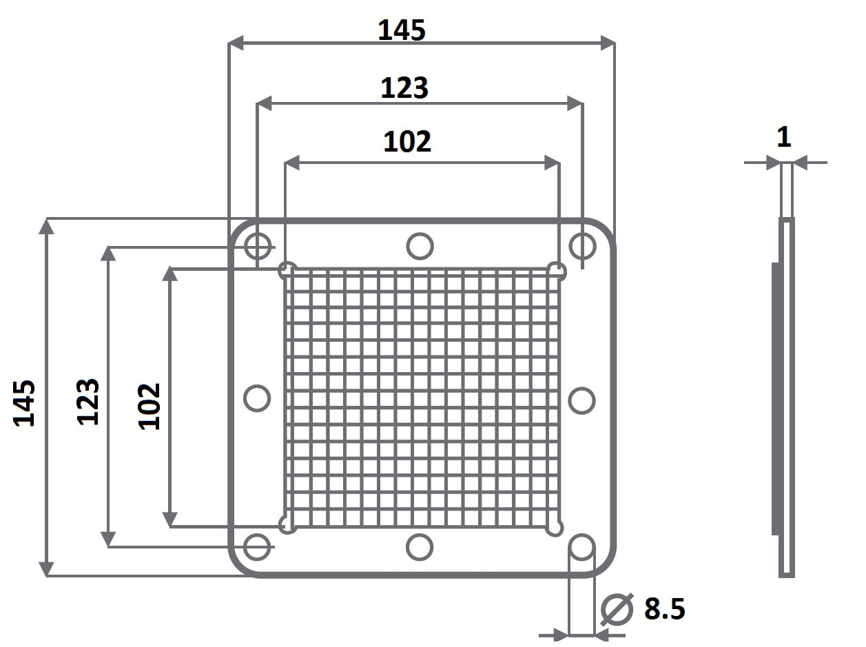 Griglia di protezione lato mandata - Da applicare al prodotto sul lato di mandata per proteggere le parti in movimento nel caso l’apparecchio sia installato in posizione accessibile