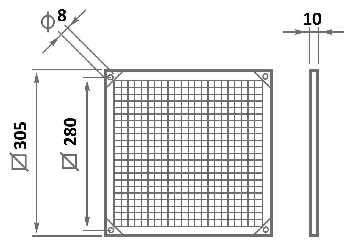 Telaio con rete - Da applicare al prodotto sul lato di aspirazione per proteggere le parti in movimento nel caso l’apparecchio sia installato in posizione accessibile (NORMA EN 294)
