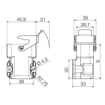 Posizione del gancio di bloccaggio - Parte inferiore (base)